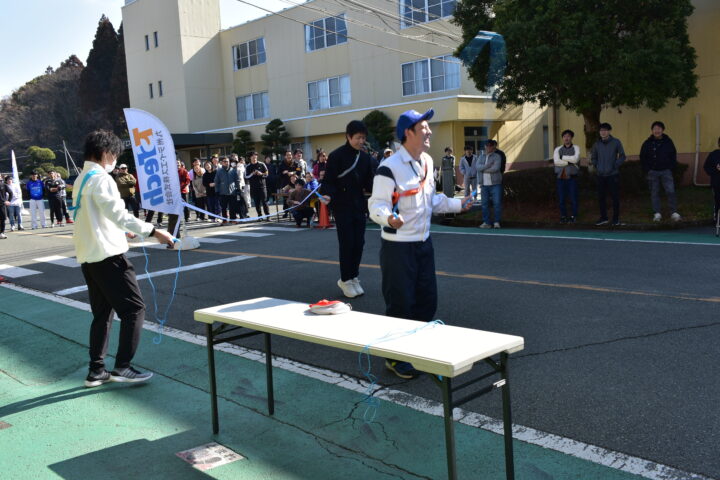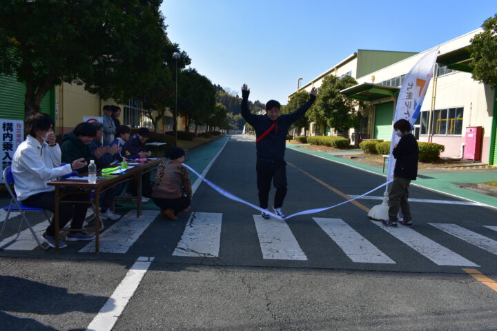 ↑ タスキをつなぎ、アンカーがゴールイン!楽しく走れました!