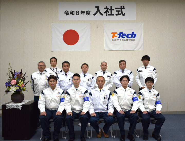 カテゴリー: お知らせ 2026.04.06 令和8年度九州テイ・エス入社式を執り行いました 令和8年4月1日(水)、九州テイ・エスでは4名の新入社員を迎え入れ、無事に入社式を執り行いました。新入社員の皆さんは緊張した面持ちで式に臨み、これからの一歩を踏み出しました。 新しい仲間たちが弊社の一員としてスタートを切ったことを心より歓迎し、今後の成長を期待しています。